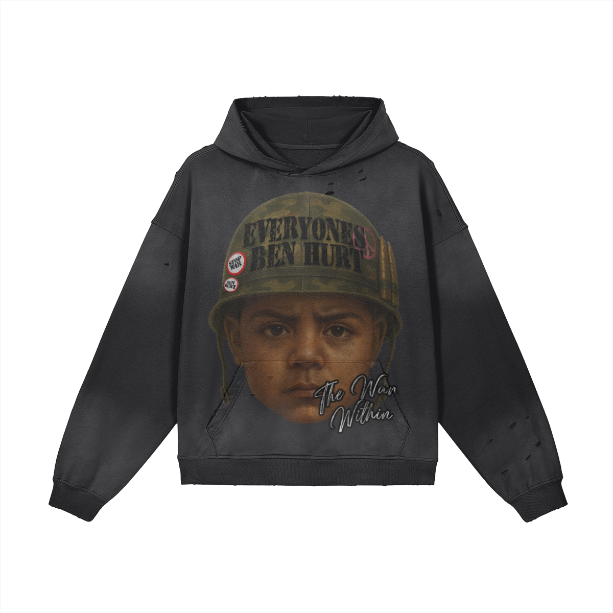 This 100% cotton hoodie pairs a sun-faded wash with distressed detailing to capture authentic vintage streetwear energy. Oversized proportions and grunge-inspired touches make it ideal for layering or wearing as a bold statement piece, blending comfort, casual ease, and standout appeal in modern everyday fashion.